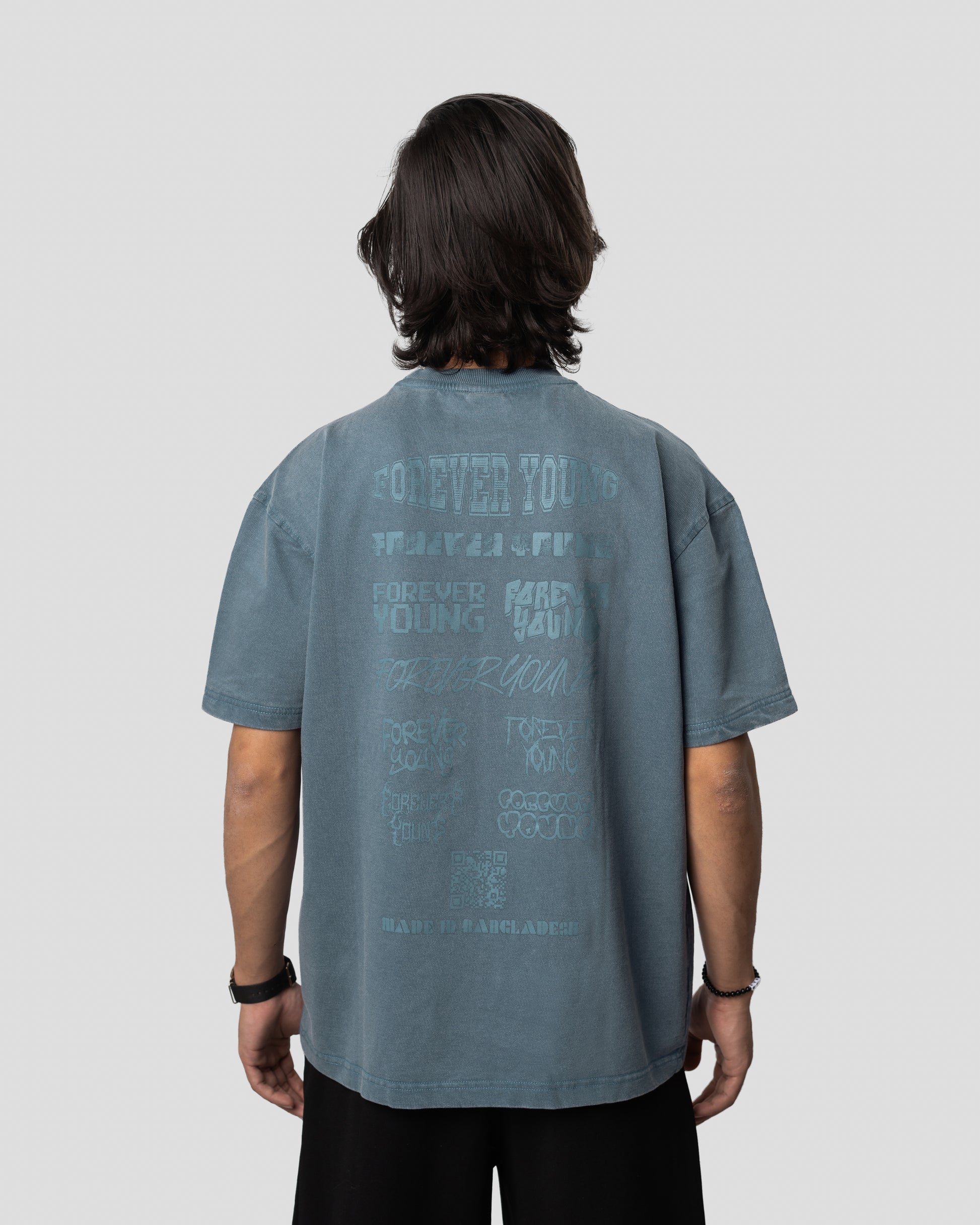 Acid Wash Oversized Drop Shoulder T-Shirt - Denim Blue