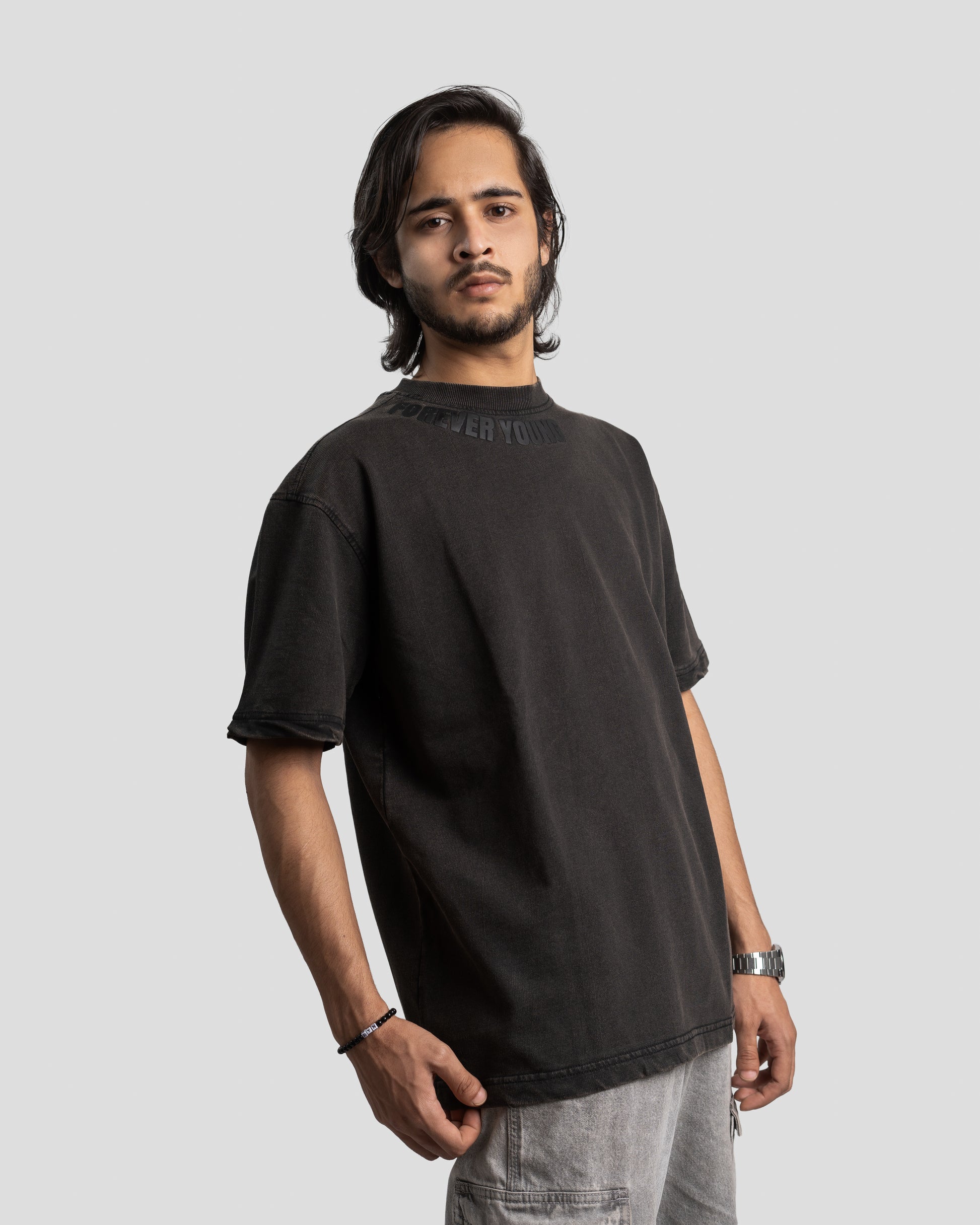 Acid Wash Oversized Drop Shoulder T-Shirt - Mat Black