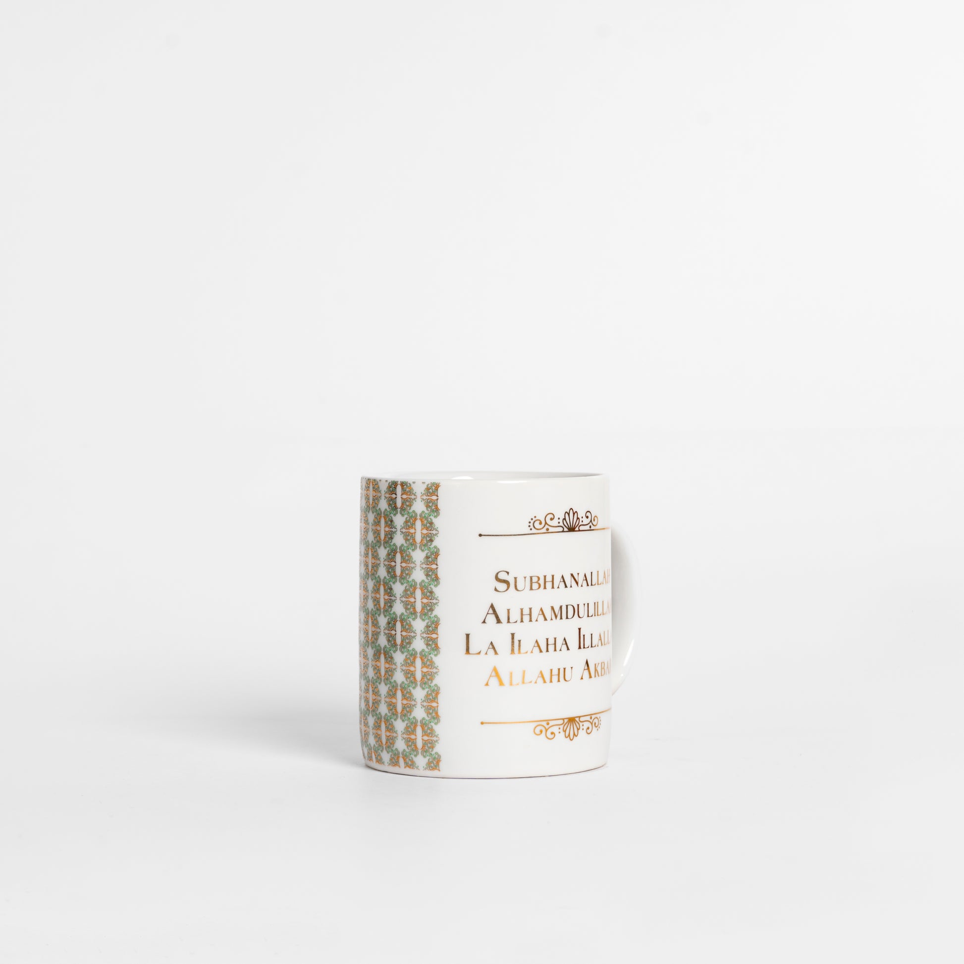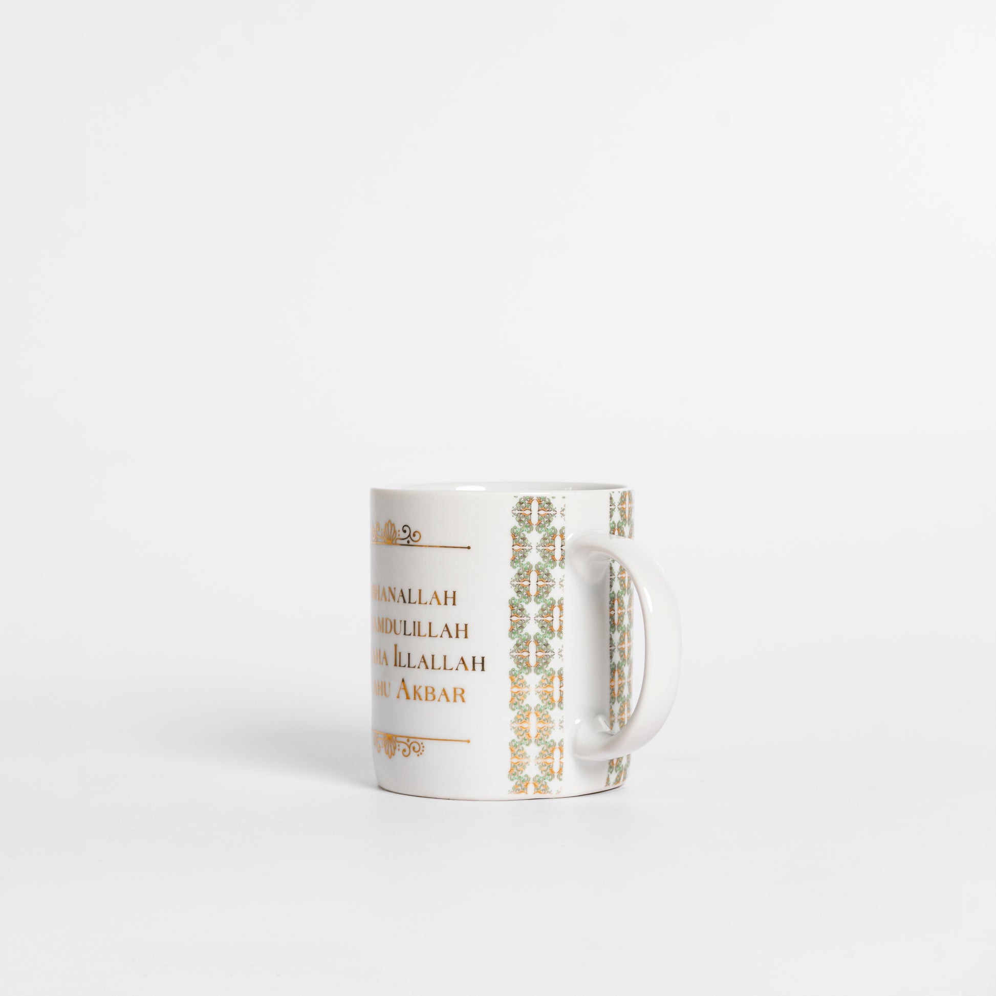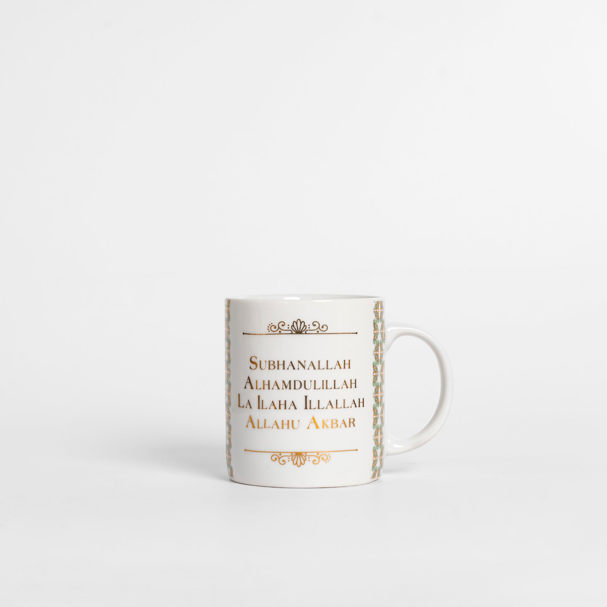 Invoke mindfulness with every sip from this Dhikr-themed mug adorned with the sacred adhkar “SubhanAllah, Alhamdulillah, La Ilaha Illallah, Allahu Akbar”