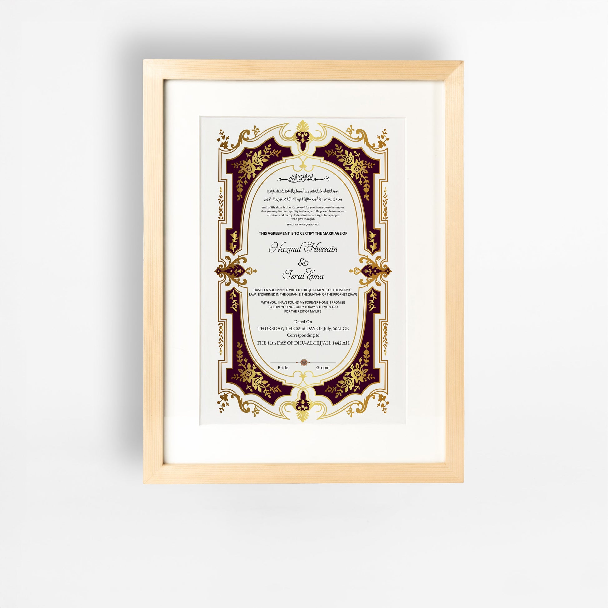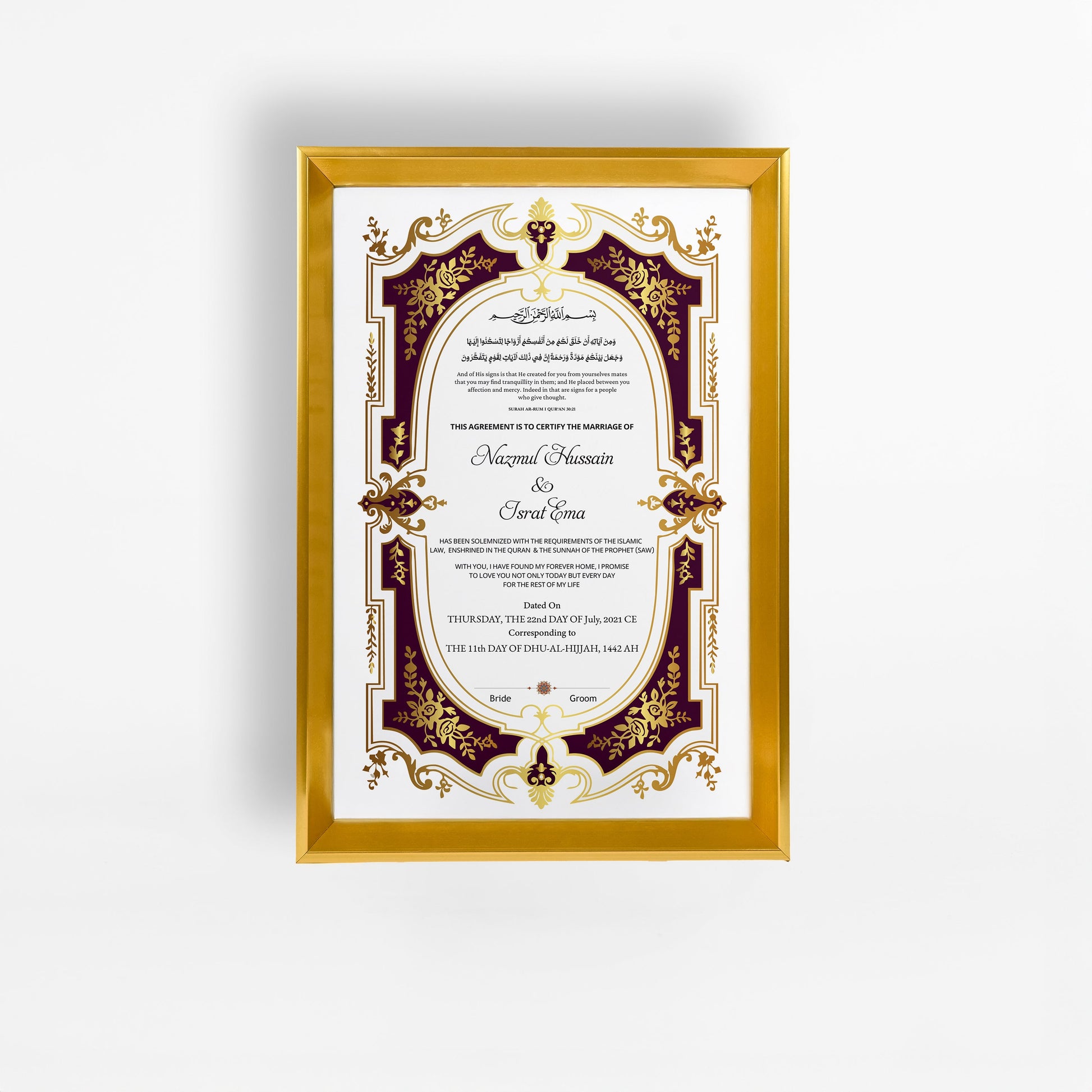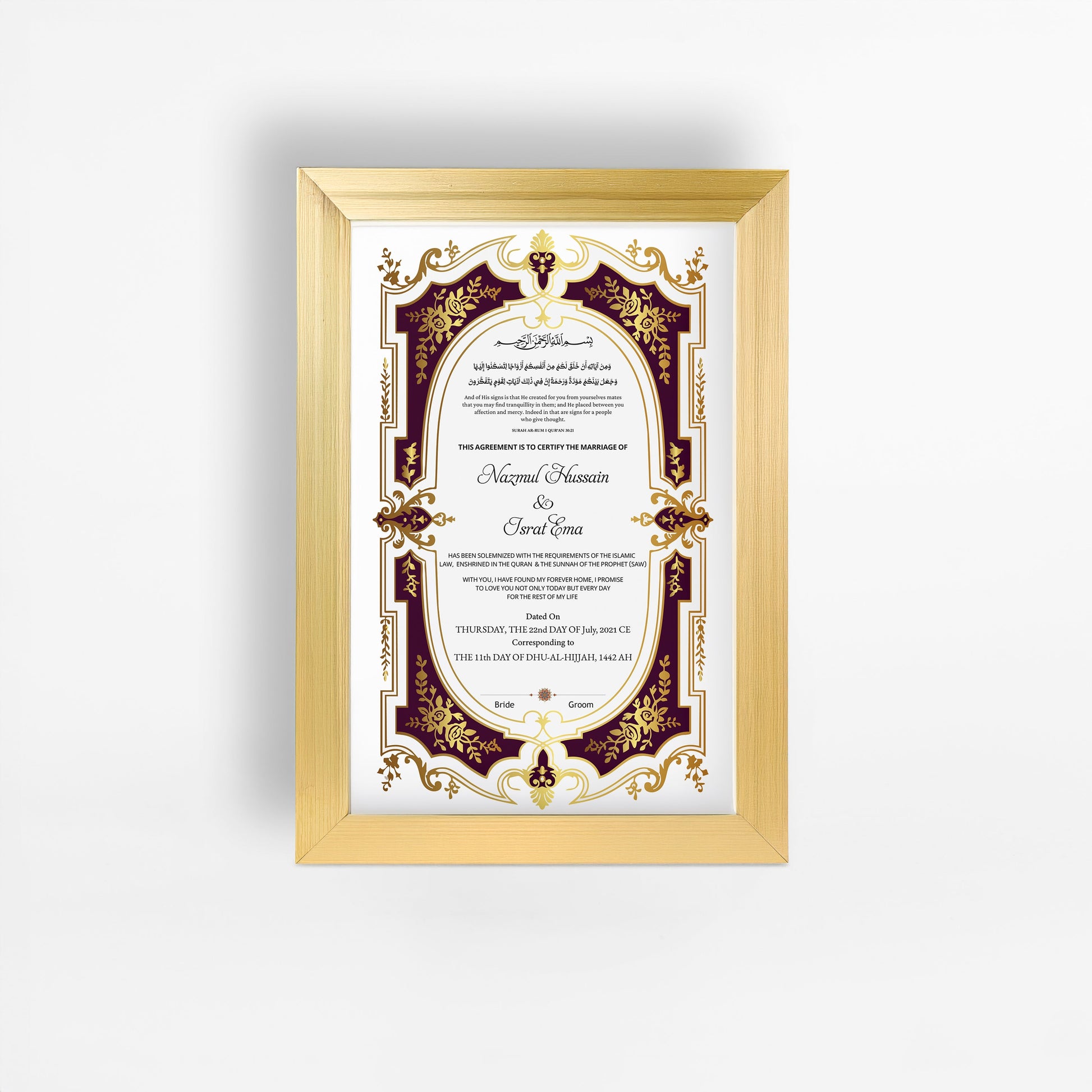 - Fully customizable Nikah Nama with bride and groom’s names.