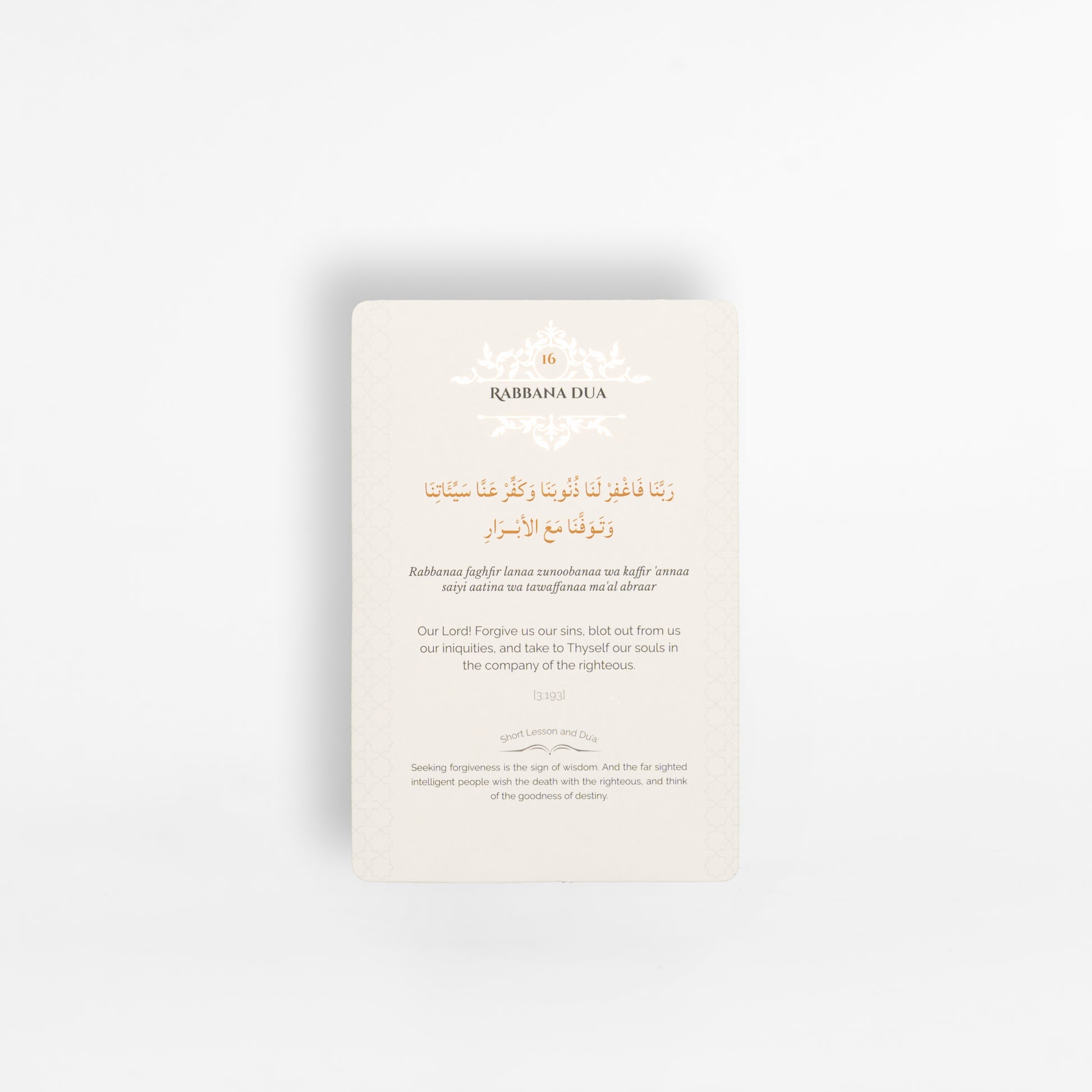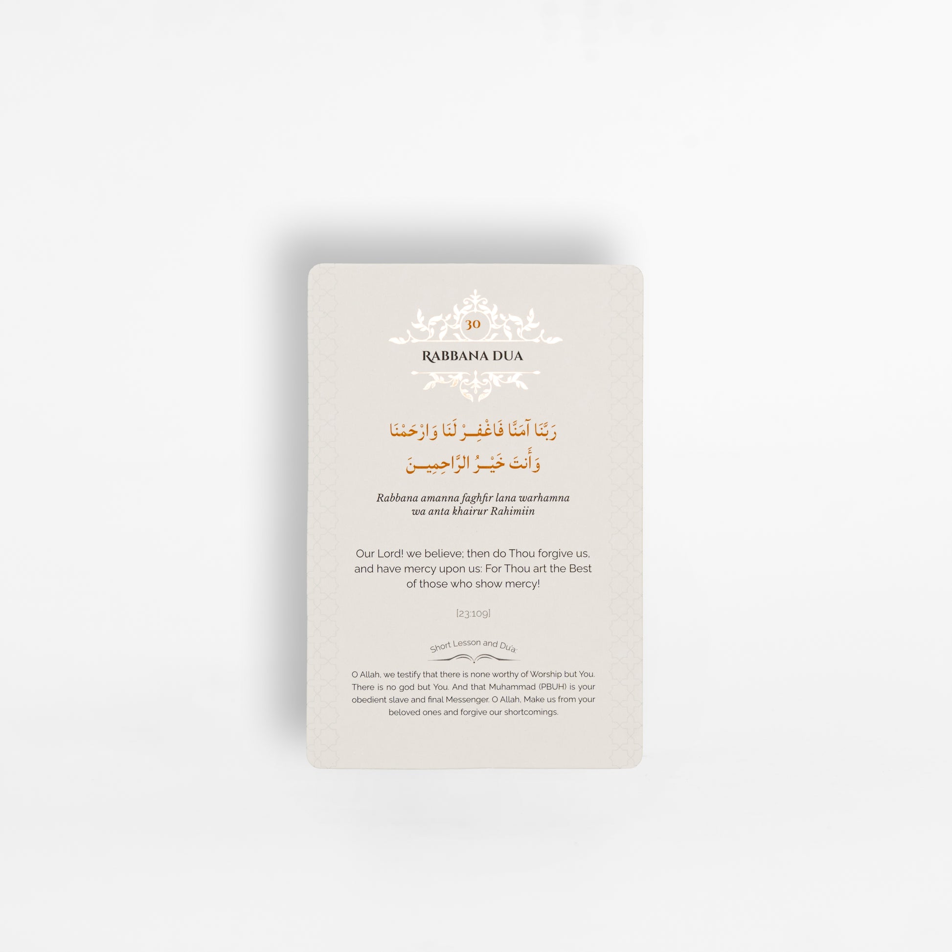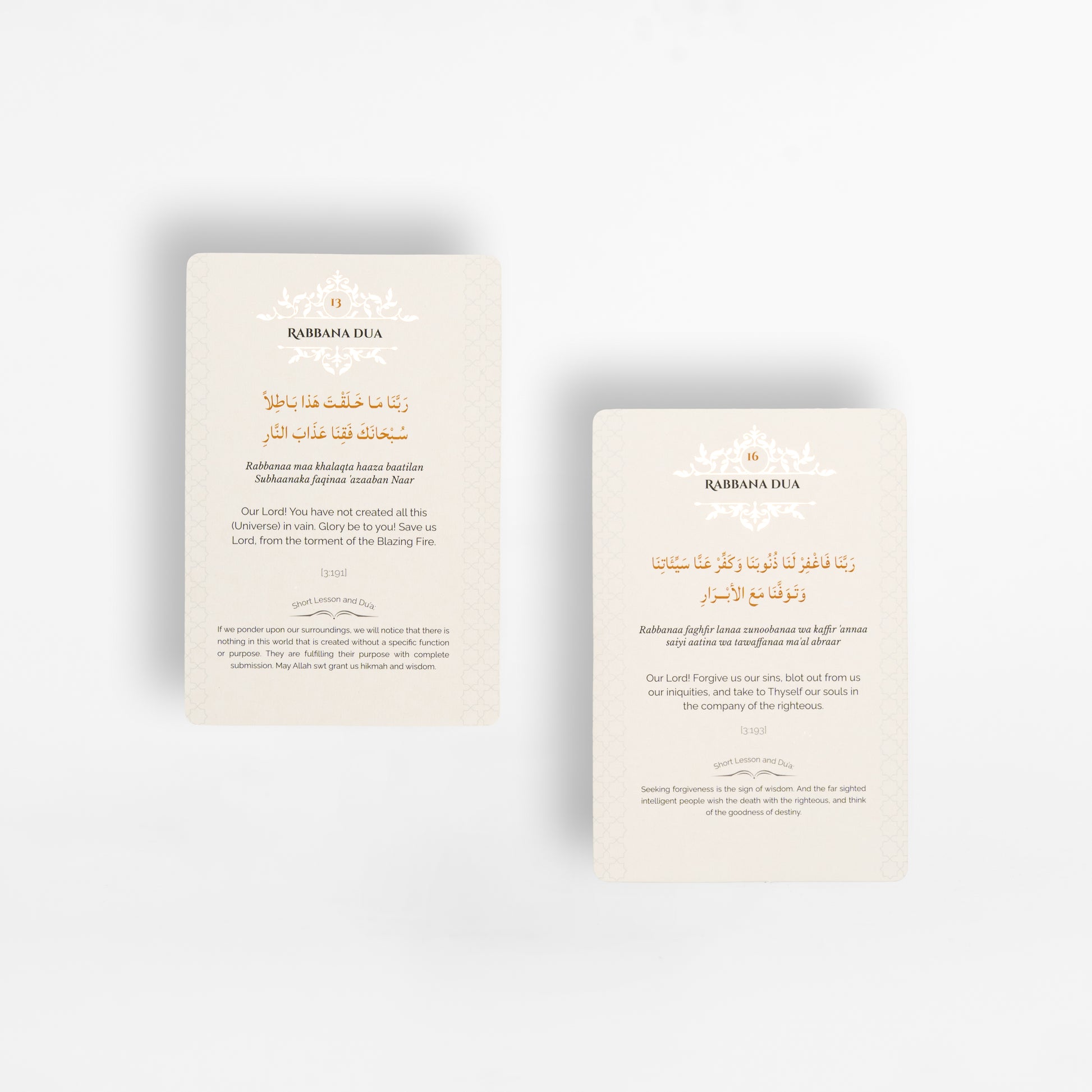 Enrich your spiritual journey with our Rabbana Dua Cards. Discover the profound beauty of these supplications, elegantly crafted for daily reflection. Nurture your connection with the Almighty through invocations designed to inspire your soul.