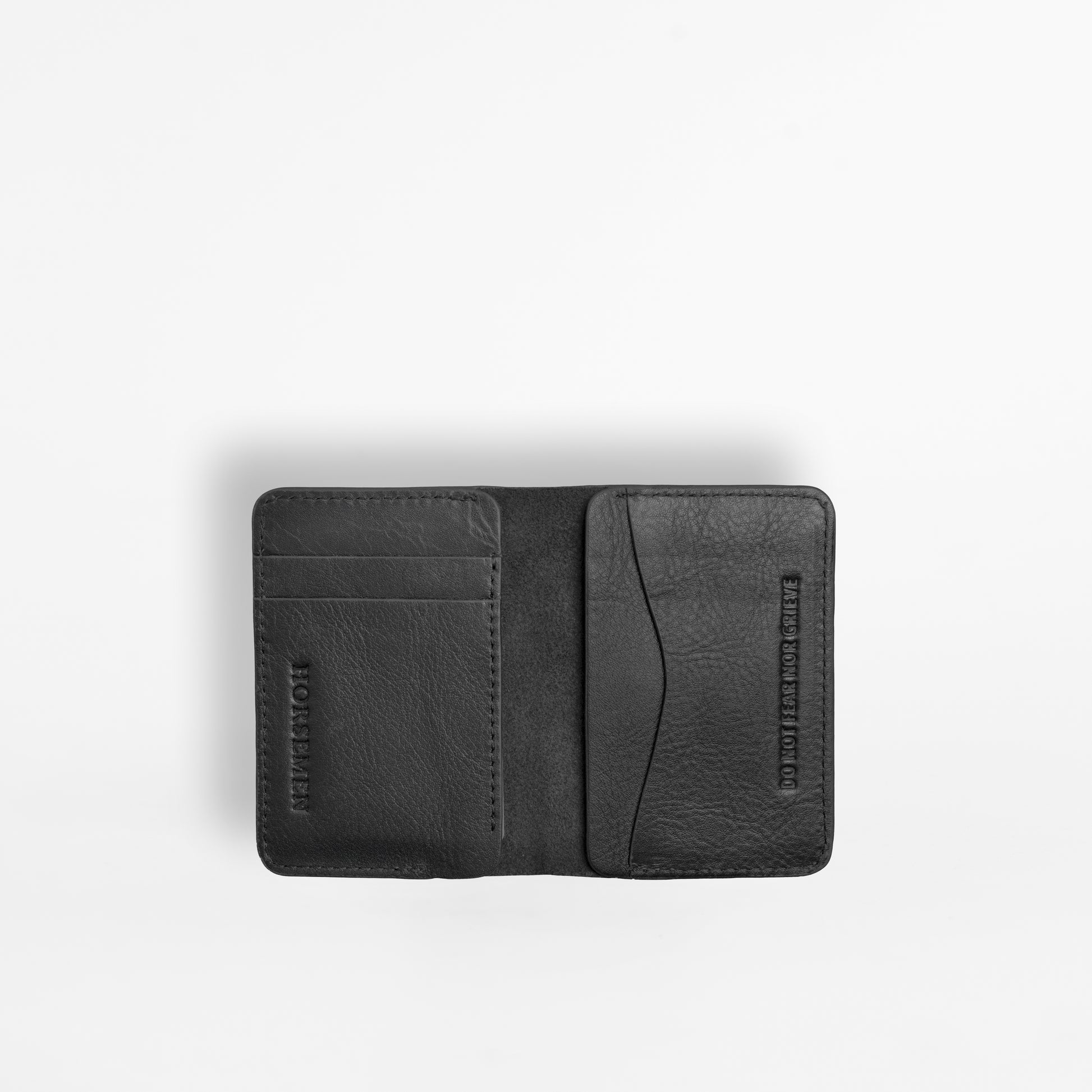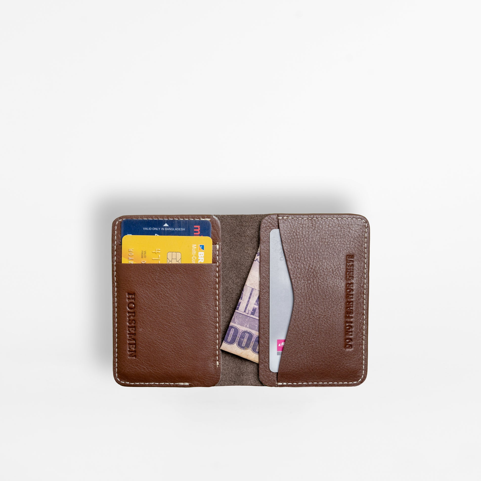 Introducing the Slim Sleeve Horsemen Wallet - The Ultimate Accessory For a Man's Lifestyle. This leather wallet crafted in a slim, pocket-friendly design offers scaled-down storage and a pull-tab insert for quick access to the essentials. Two interior card slots; slip pocket; and pull-tab pocket. The wallet looks elegant when in hand and keeps your cards and notes perfectly organized.